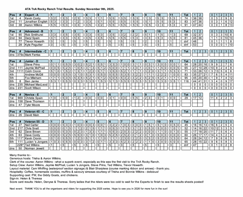 Here are the results for the ATA TnA Rocky Ranch Trial on Sunday, November 9th, 2025.