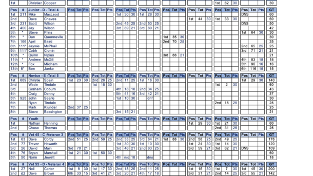 Edit: Please note results include Clubman riders so GTotal points will differ from CMA Regional Series points.