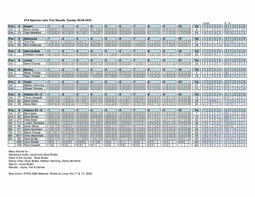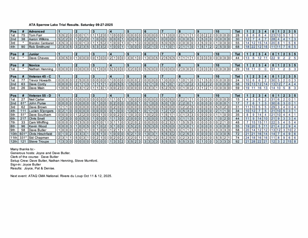 Thank you for attending the Spectacular Sparrow Lake 2-Day Trial. Rounds 6 & 7 of the 2025 ATA Series.