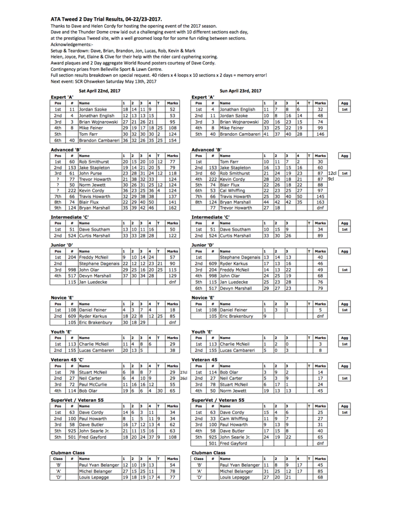 Thank you indeed to the Feiner family from the ATA and the Ontario Trials community.